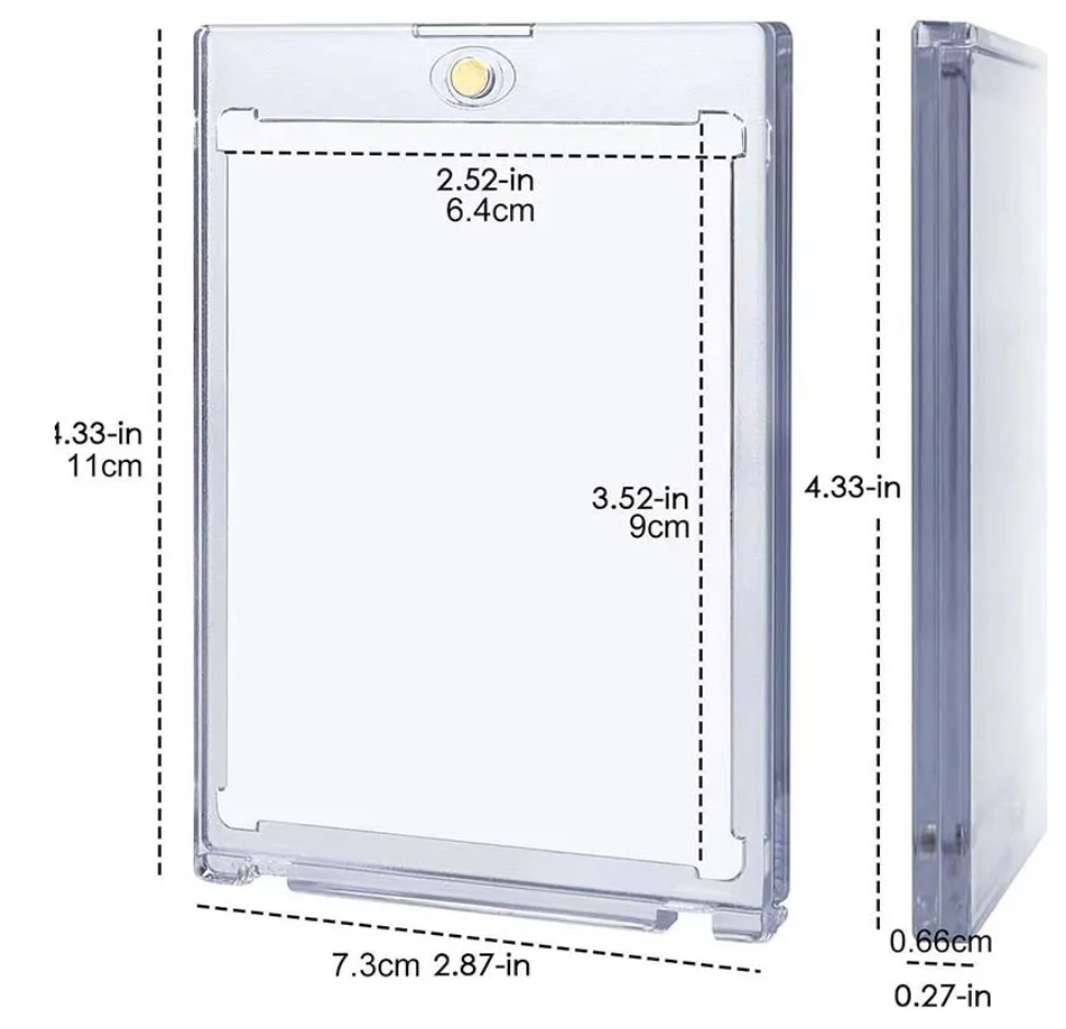 One-Touch Magnetic Card Holder, the perfect choice to display your rare cards and decorate your room. Made of acid-free, thick and heavy acrylic, with high definition and long life. Easy to open with good tightness, with UV-resistant coating offer more protection for your trading card.