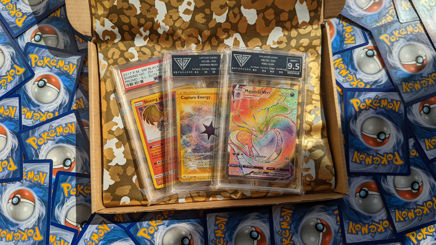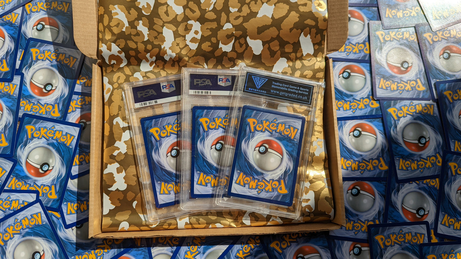 Receive one or more highly valuable and sought after EX / GX / V MAX / Promo / Secret Rare / Rainbow / Vintage or Full Art Graded Cards within this box, this box is ideal for those who would like to add some highly sought after cards already graded by well-known companies.